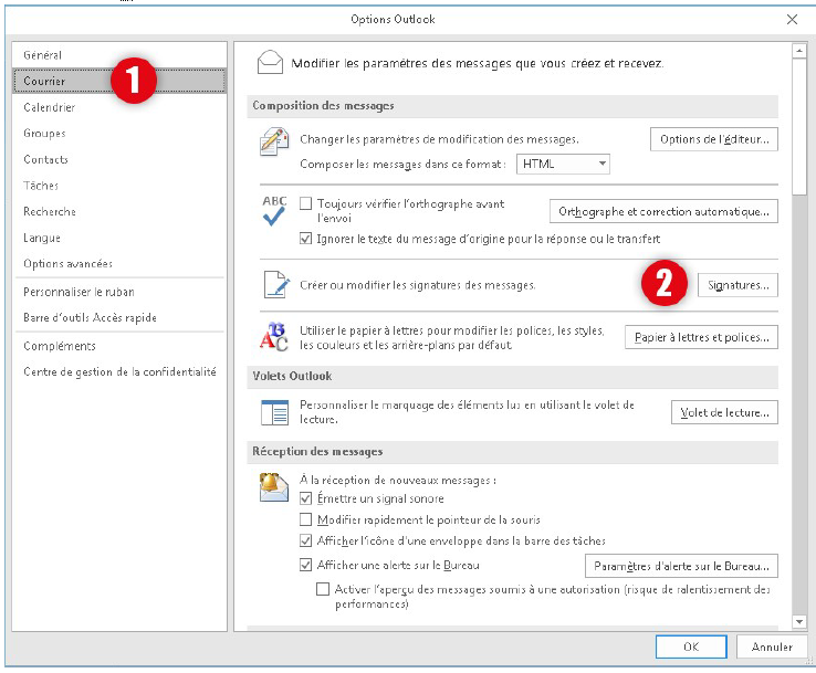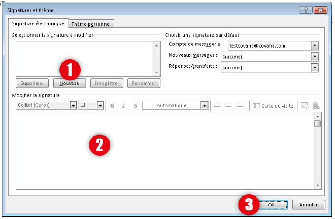 Marche à suivre pour l'implantation d'une nouvelle signature dans Outlook